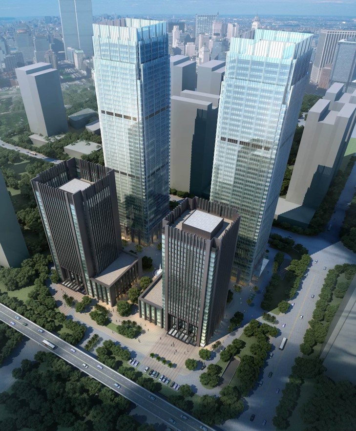 位于武汉市江汉区CBD中央商务区内,本项目由四座相互独立的高层办公塔楼组成,其中三栋高度超过100米。