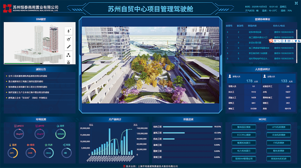 通过驾驶舱集成,统筹项目质量、安全、进度、成本管理及智慧工地硬件数据