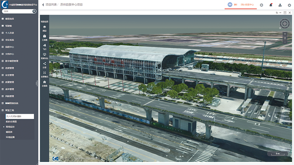 将现场无人机倾斜摄影成果集成至平台,各参建方在平台内对无人机倾斜摄影成果进行使用,为后期设计及决策提供真实周边及地形数据