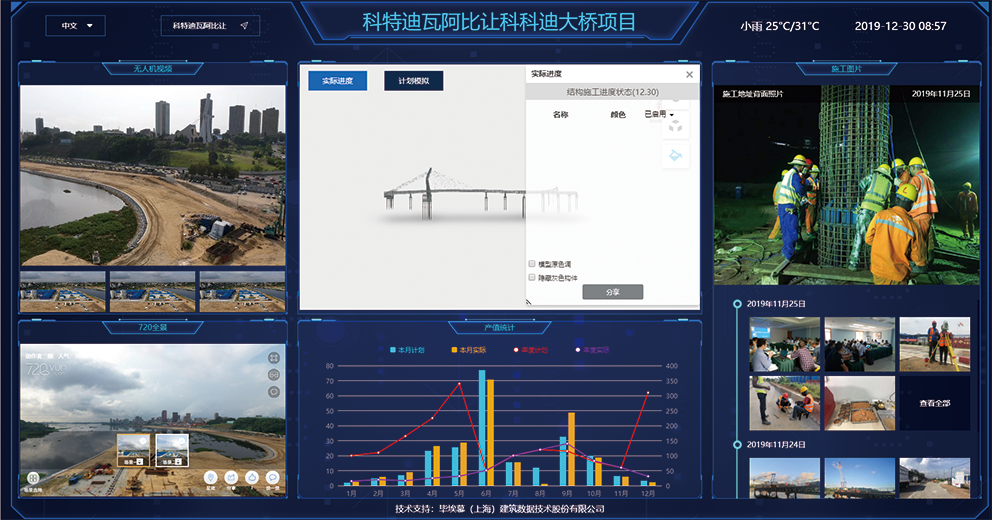 科特迪瓦Cocody大桥项目由于内部项目管控采用各业务管理高层每月各项目巡检的模式进行项目管控,因此需要通过信息化技术手段解决异地项目高质量管控的效果。