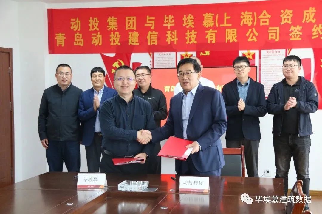 2021年10月,由毕埃慕(上海)建筑数据技术股份有限公司与青岛动车小镇投资集团有限公司旗下青岛动投数字科技有限公司联合出资而成的青岛动投建信科技有限公司(“动投建信”)签约仪式在青岛市动车小镇顺利举行。
