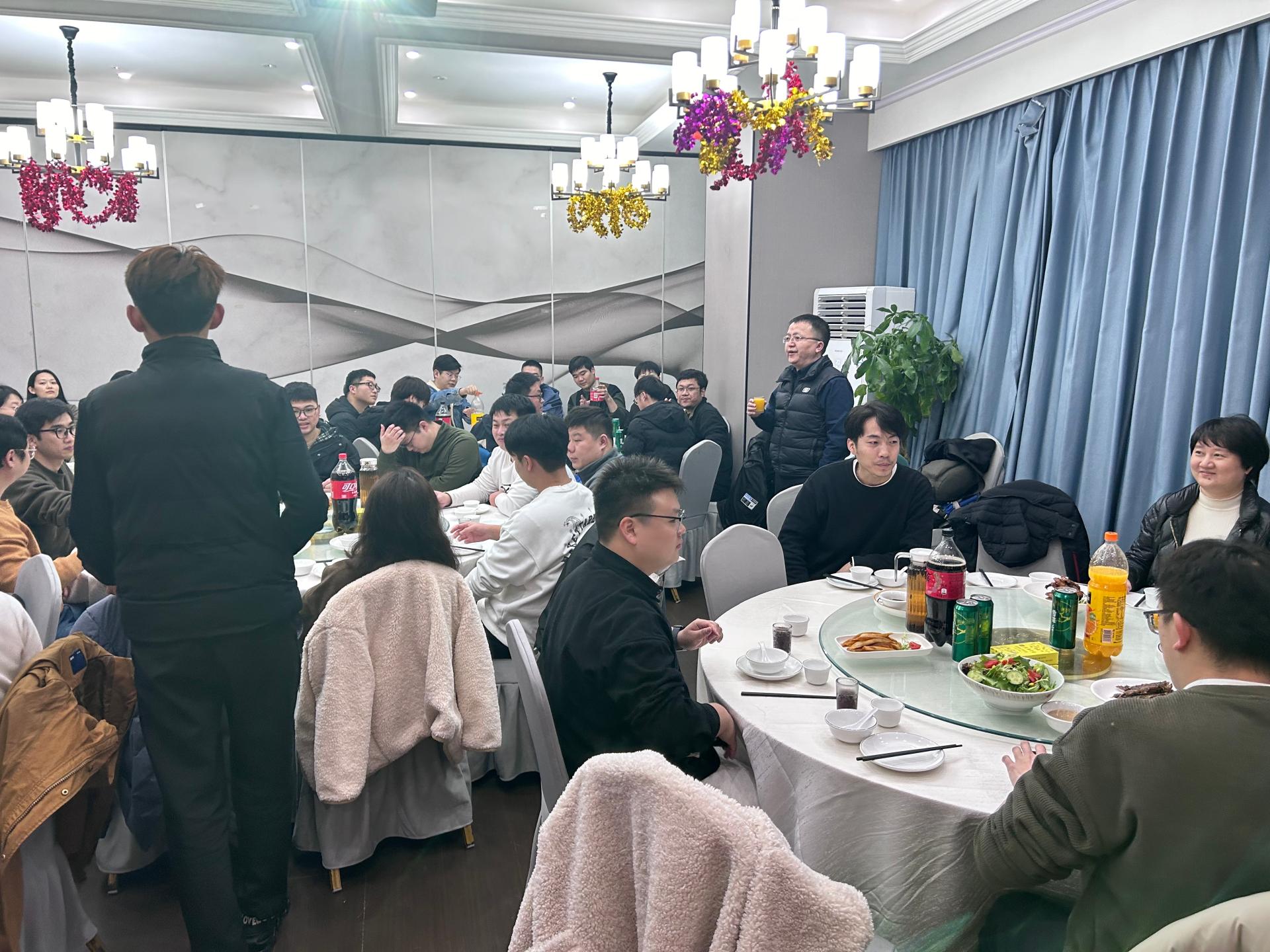 晚宴环节是年会的重头戏之一,大家欢聚一堂,畅谈工作和生活。在轻松愉快的氛围中,同事们互相敬酒祝福,共同庆祝新春佳节的到来。此外,晚宴还准备了丰富多彩的节目表演和互动游戏,让现场气氛更加热烈。在这个欢乐的时刻,董事长林敏先生更是献唱一曲,表达对大家的感谢与祝福。林敏先生的歌声深情动听,寄托了对毕埃慕未来的美好期许。