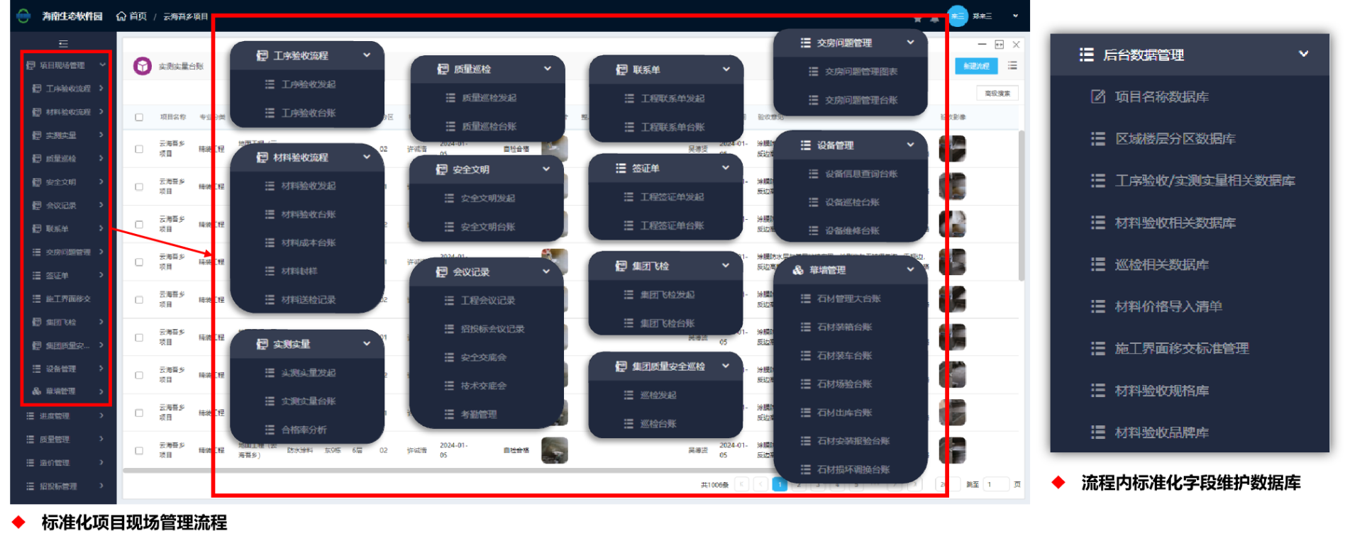 提供流程搭建思路;进行进度模型与检验批的绑定及台账更新,打通交互壁垒。