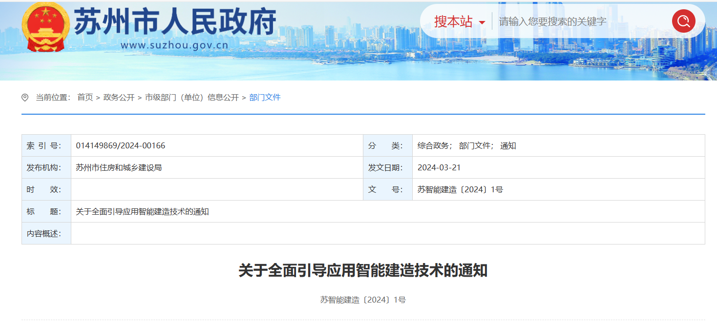 按照智能建造试点城市工作要求,为认真落实市政府《关于加快推进智能建造的实施方案》(苏府〔2022〕89号),持续推进我市智能建造试点各项工作,经研究,决定在我市建筑施工领域全面引导应用智能建造技术。现将具体事项通知如下: