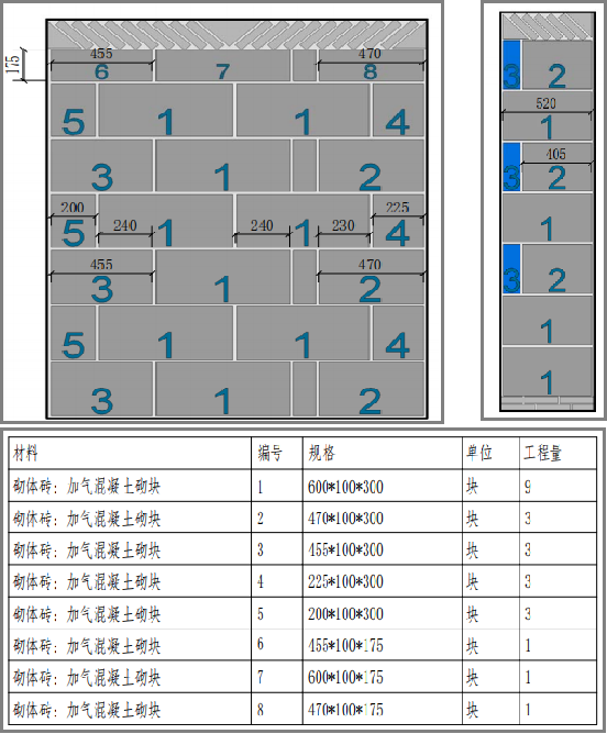 本项目利用BIM技术于施工前进行二次砌体排布并导出排布图纸,以达到节约施工材料耗损率、降低施工成本等目的。