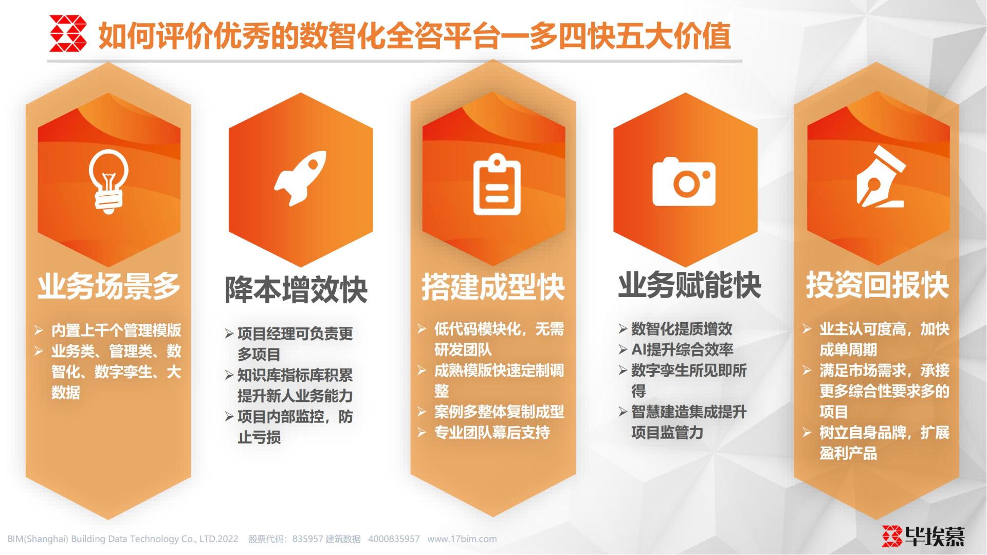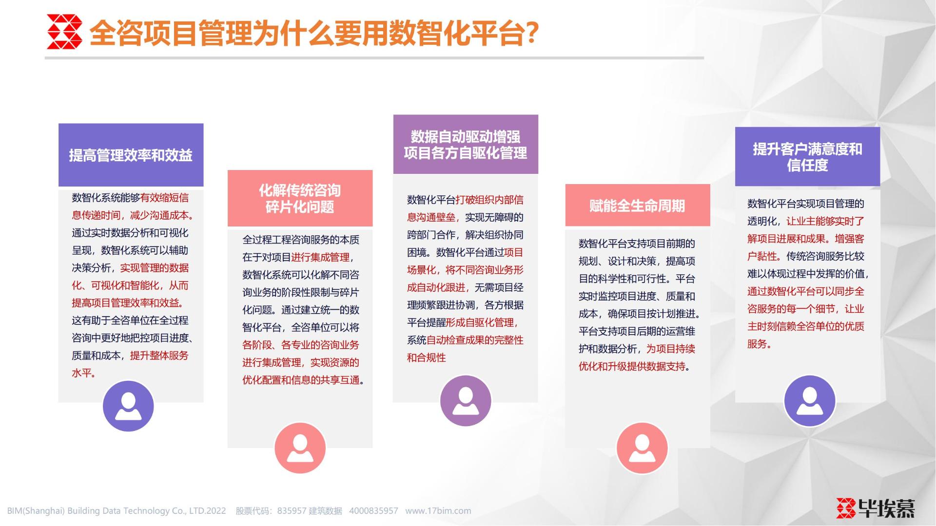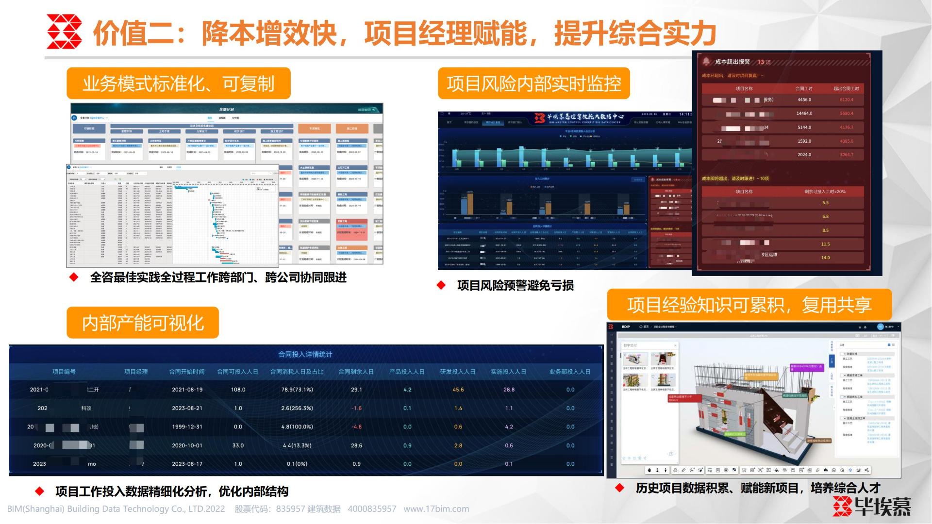 这些案例均源于毕埃慕客户的实际项目应用,并已成功落地实施,林敏先生提出了一系列具有前瞻性的观点,包括“虚实共生、多源汇聚,一舱读懂,钻取溯源”的顶层大数据挂图作战驾驶舱,自动化业财一体且全集团数据共融的招采管理方案,以虚仿实、智能对比且成果复用的设计管理方案等多项涵盖全咨各环节的数字化管理策略, 其中还包括幕墙管理、交房管理等多个关键环节,充分展示了数字化技术在全过程咨询业务中的深度融合与实际成效,有效助力企业提升项目精细化管理水平,加速业务转型进程。 旨在打造全方位、多层次的数字化全咨服务体系,推动行业整体转型升级。