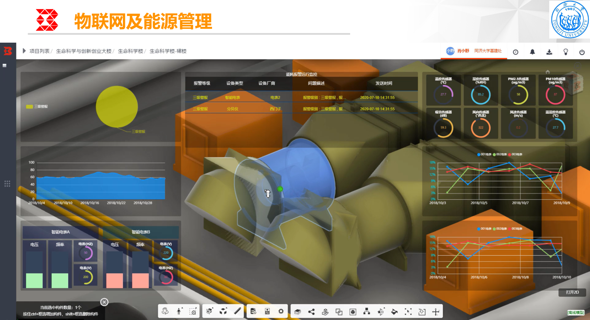 同济大学建养一体化平台课题实现了在建设期内预埋了大量养护和运营需要的感应设备,在设计和招标过程中提前植入未来运维所需的数字化感应模块,让建筑物在建设期就有了感应终端和神经传导系统。